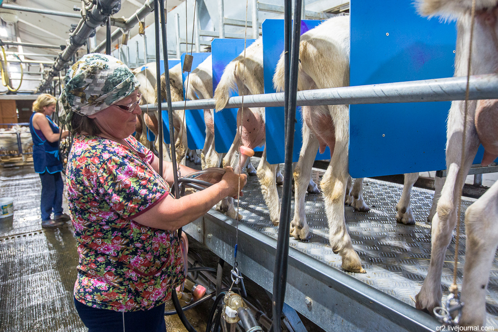 В холодное время года козью ферму обслуживают шесть человек — двое дояров, двое переработчиков молока и пара разнорабочих. Летом, когда идет заготовка кормов, уборка сена и реконструкция зданий, штат увеличивается вдвое.