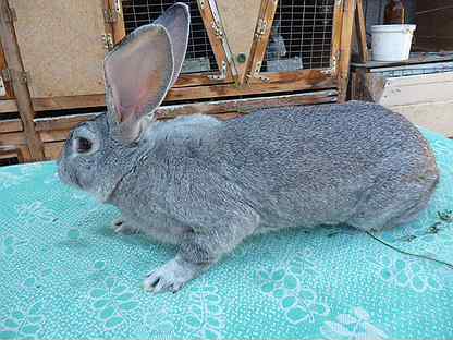 У данной породы хорошо сложенное, мускулистое тело и широкая грудь. Небольшая голова снабжена пропорциональными стоячими ушами. Средняя длина животного колеблется от 60 до 72 сантиметров, сбитость доходит до 65%.Тело покрыто густым и мягким мехом, который имеет серо-голубой цвет. При забое животных средний выход мяса составляет 60% от общего веса взрослого кролика.