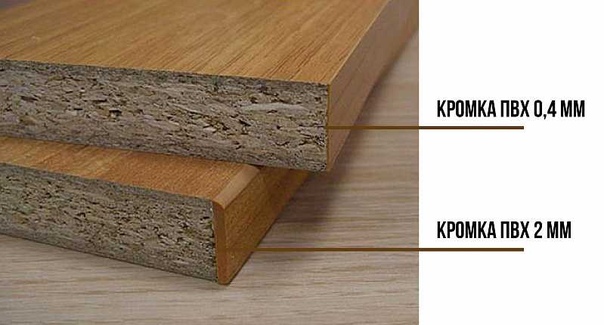 На лицевые торцы фасада и выдвижных ящиков лучше использовать ПВХ 2 мм, а на видимые срезы полок — ПВХ 1 мм. Цвет выбирают или в тон основной поверхности или «в контраст».