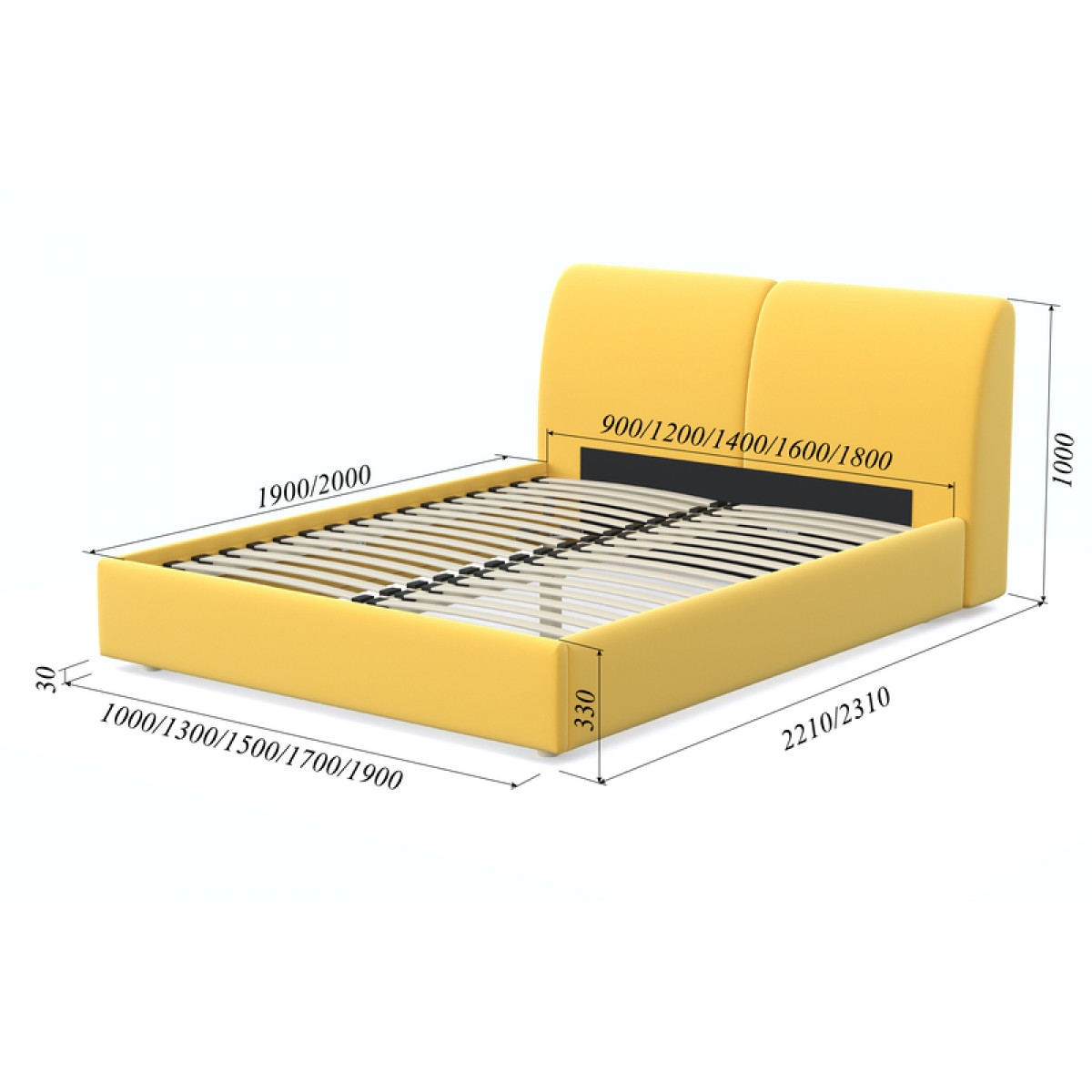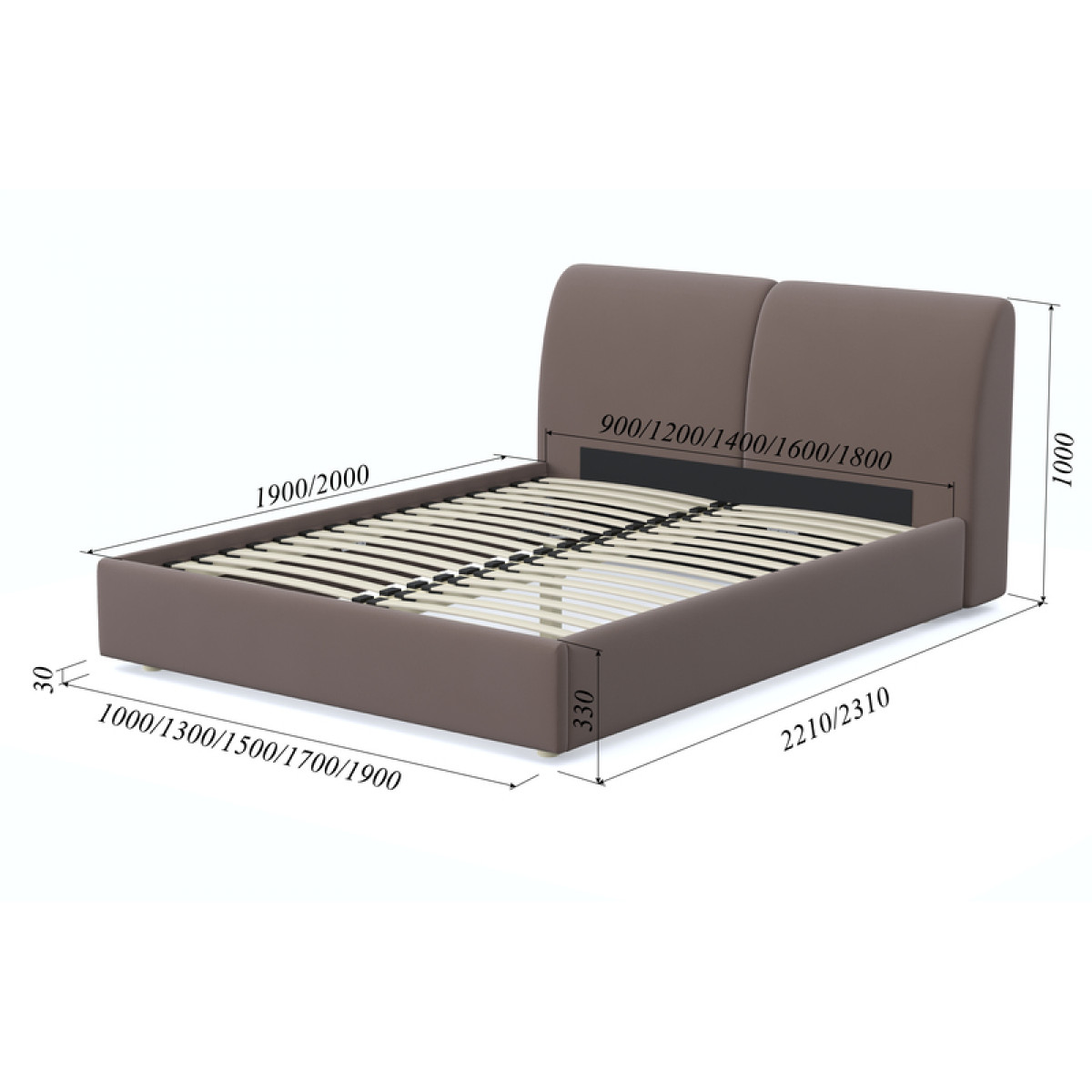 Изголовье и изножье – деревянные или оббитые дорогим текстилем с пуговками, как в модели Ancona: