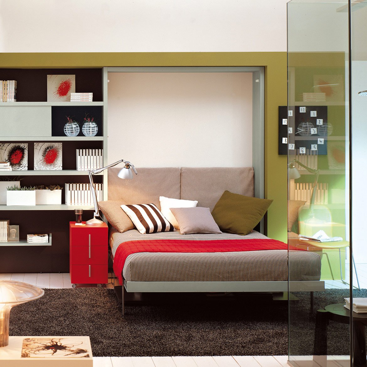 - При помощи встроенной кровати можно менять интерьер комнаты, разбирая и собирая спальное место.