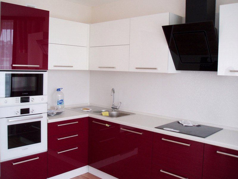 В таком случае важно найти баланс в оттенках, например, сделать белый цвет основополагающим. Светлая кухня небольшого габарита будет казаться больше и просторнее, а яркие акценты красного внесут изюминку в обстановку.