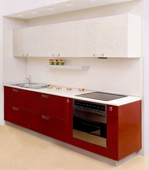 Вас способно заворожить и заинтриговать сочетание пламени и льда? Или для Вас больше по вкусу клубника со сливками? Тогда кухня в красно-белом цвете непременно будет Вам по вкусу и порадует Вашу душу.