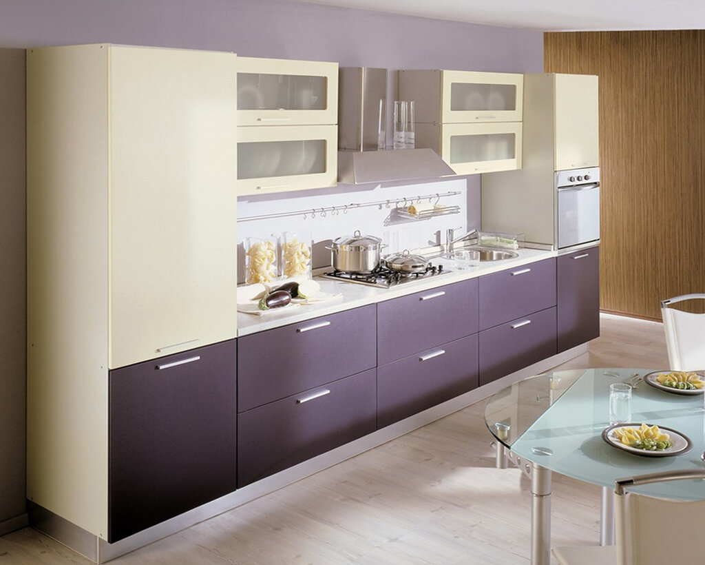 - Не менее востребованы сегодня оранжевый, зеленый, розовый и фиолетовый цвета. Такие кухни всегда смотрятся ярко и уникально.