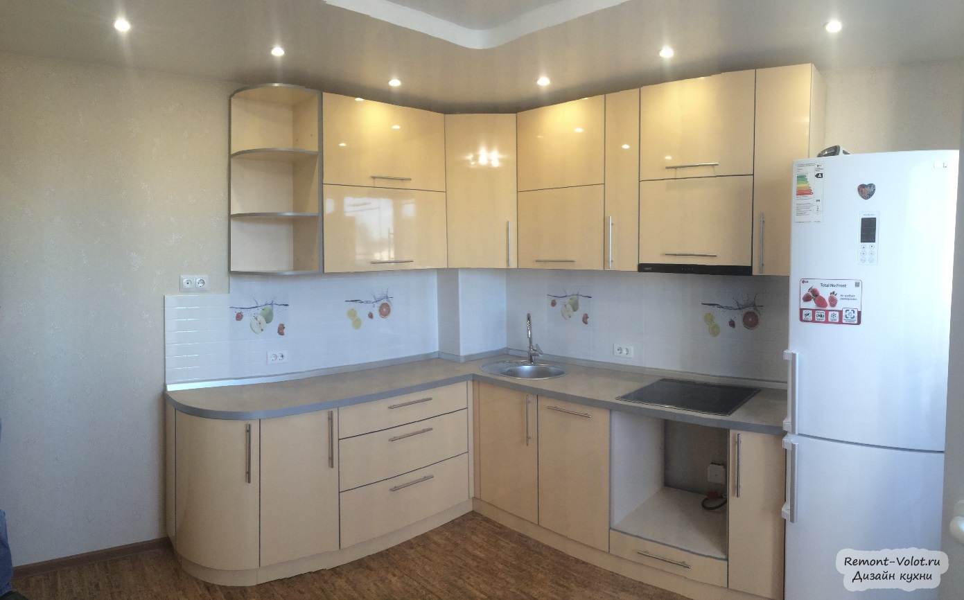 - Отделка ПВХ или акриловой кромкой является идеальным вариантом для угловой кухни любой геометрической формы. Благодаря разнообразной цветовой гамме можно подобрать кромку любого оттенка.
