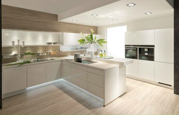 Для таких кухонных гарнитуров характерен довольно минималистичный внешний вид относительно форм, но вот цвет гарнитура может быть как белым, так и, например, кислотно-лимонным.