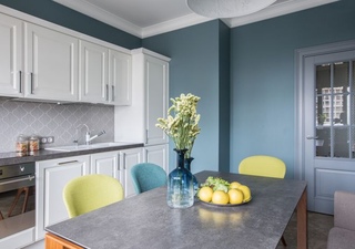Повесив шкафы сочных оттенков, можно отвлечь внимание от недостатков помещения. Для выравнивания площади выбирайте для пола покрытия с геометрическим узором. Для увеличения габаритов кухни можно соединить ее с гостиной. Появится больше места, менее заметным станет короб. Если конструкция слишком большая, то стоит отказаться от дизайнерских приемов для маскировки. Лучше разделить рабочую поверхность на несколько участков.