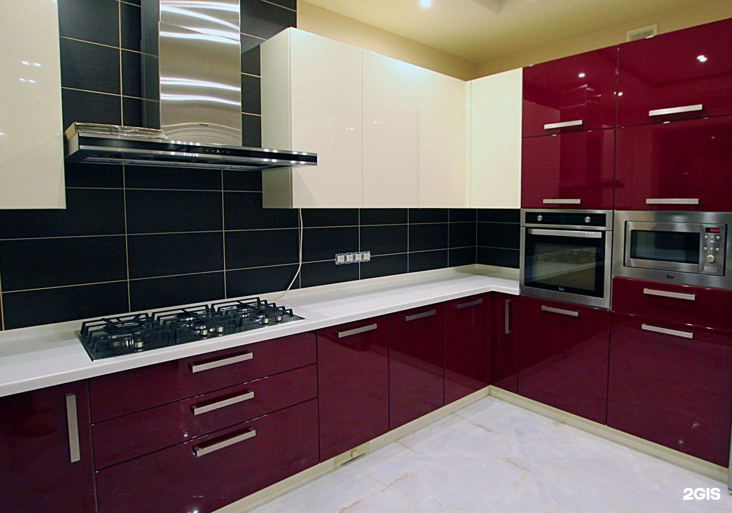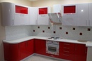Такой вариант великолепно смотрится в стиле хай-тек или модерн. Красиво сочетается красный глянец и матовый белый цвет.