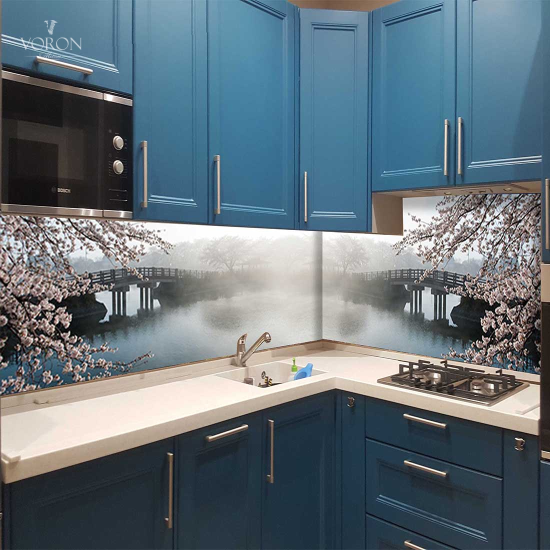 «скинали» — так называются фартуки с фотопечатью) смотрится очень современно и подойдет кухне в стиле модерн или хай-тек.