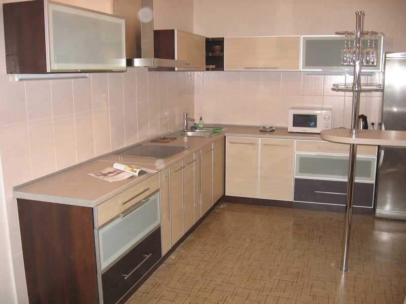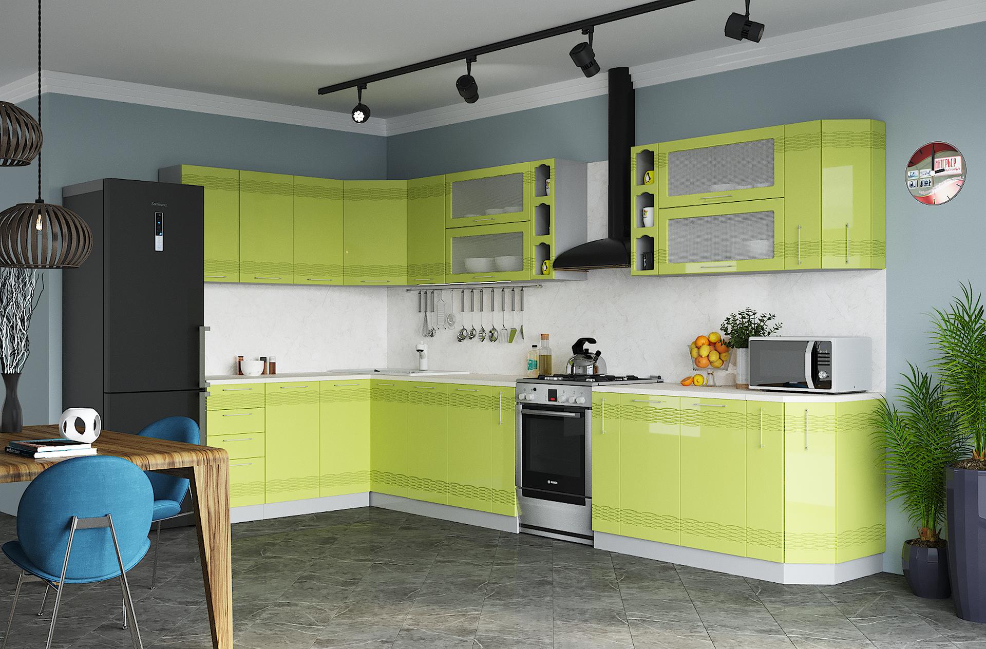 Вторые модификации могут иметь разное количество модулей. Их подбирают исходя из высоты стен и их ширины. Также в этом случае одним из ключевых факторов является и планировка кухни. Модульные кухни могут быть не только линейными, как встроенные аналоги: помимо этого, они бывают угловыми и П-образными.