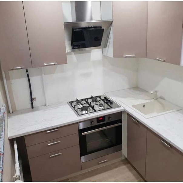 Кухни цвета капучино подходят для комнат разной площади и планировки. Их можно установить в отдельных и совмещенных комнатах.