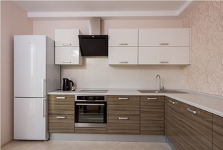 Выбирая кухонный гарнитур цвета кофе с молоком, нужно учесть несколько факторов. Одним из них является соответствие кухни и размеров конкретной комнаты. Мебель не должна смотреться громоздко, важно, чтобы пространство не казалось перегруженным. Если в комнате мало места, покупают гарнитур с навесными шкафами. При этом смотрят на ширину комнаты: если помещение узкое, целесообразно купить линейный гарнитур небольшой ширины.