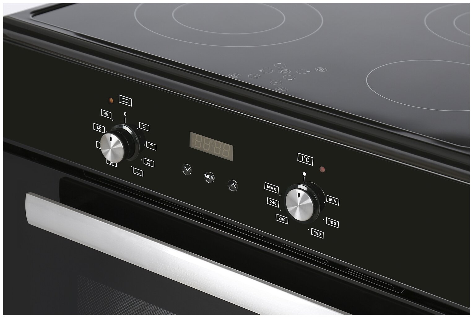 Печь оснащена встроенным датчиком с целью контролировать температуру духовки, а также регулировать элементы приготовления, которые, в свою очередь, помогают пище равномерно готовиться. Варочная панель из керамического стекла гарантирует, что вы сможете очень эффективно и быстро чистить свою технику без использования чистящих средств.