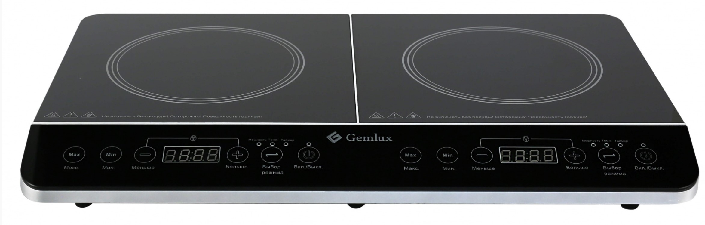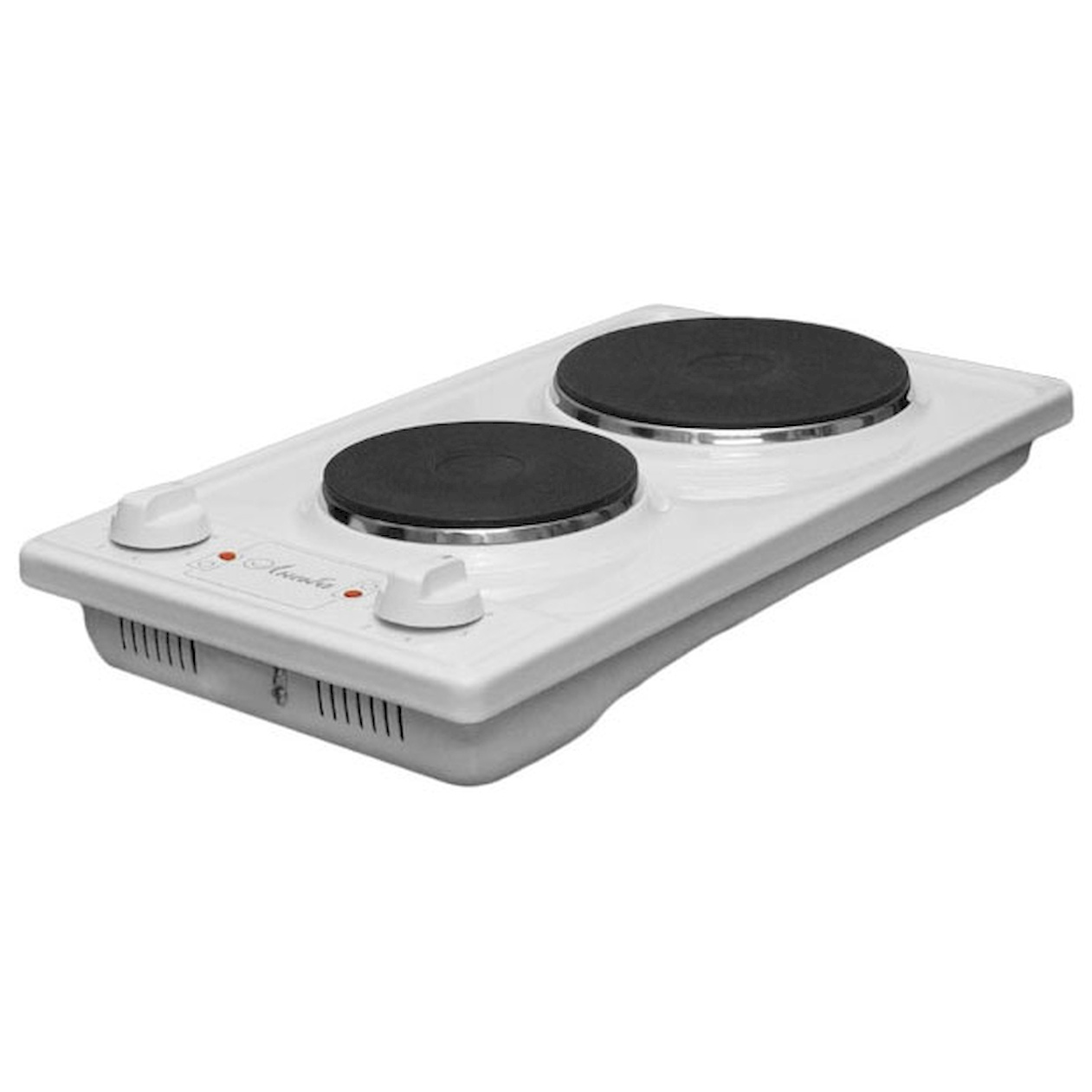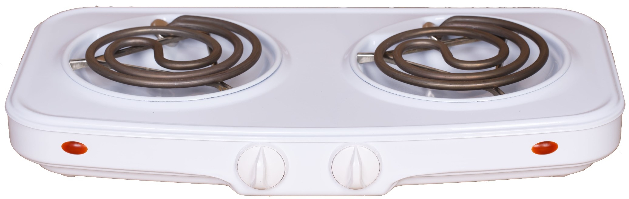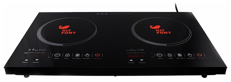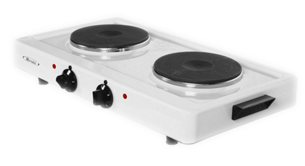 Два больших нагревательных элемента на панели диаметром 180 мм позволяет разместить большие сковороды, которые будут равномерно нагревать даже на краях. Панель управления не имеет цифровой клавиатуры, а управляется надежными механическими переключателями.