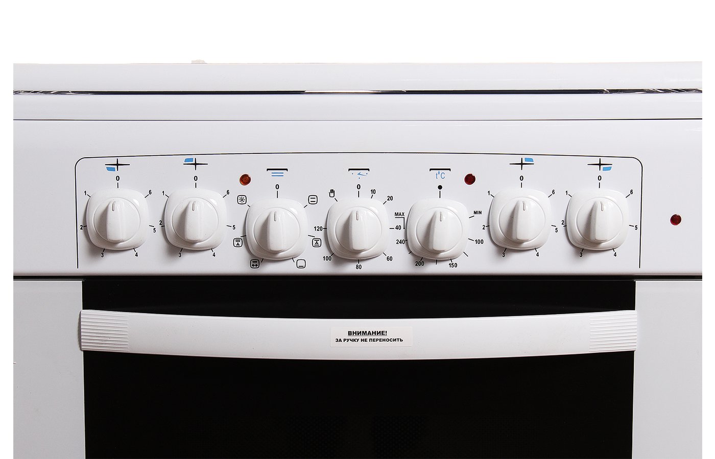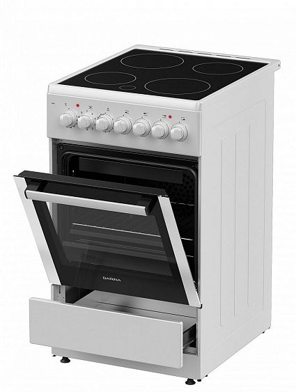 В DARINA отсутствует лишь несколько функций, которые отличают ее от более дорогих марок. Печь не имеет конвекционного режима, поэтому вам придется придерживаться классического способа приготовления в духовке. На варочной панели есть 3 комфорки покрытые стеклокерамикой суммарной мощностью 4,5 кВт.