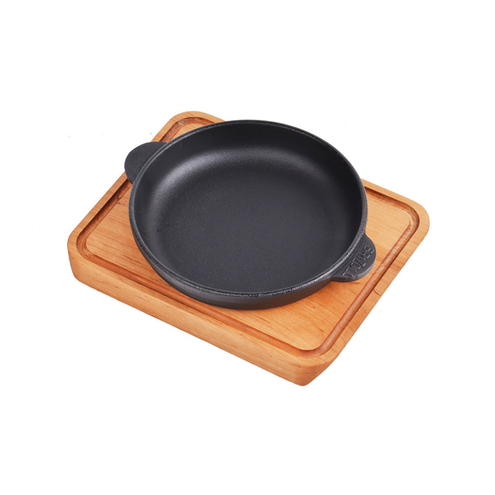 В разделе представлены чугунные сковороды с деревянной подставкой. Доска из натурального дерева предохраняет столешницы от воздействия высоких температур, образования царапин и других механических повреждений. Делает возможной подачу горячих блюд без использования дополнительного инвентаря или посуды.