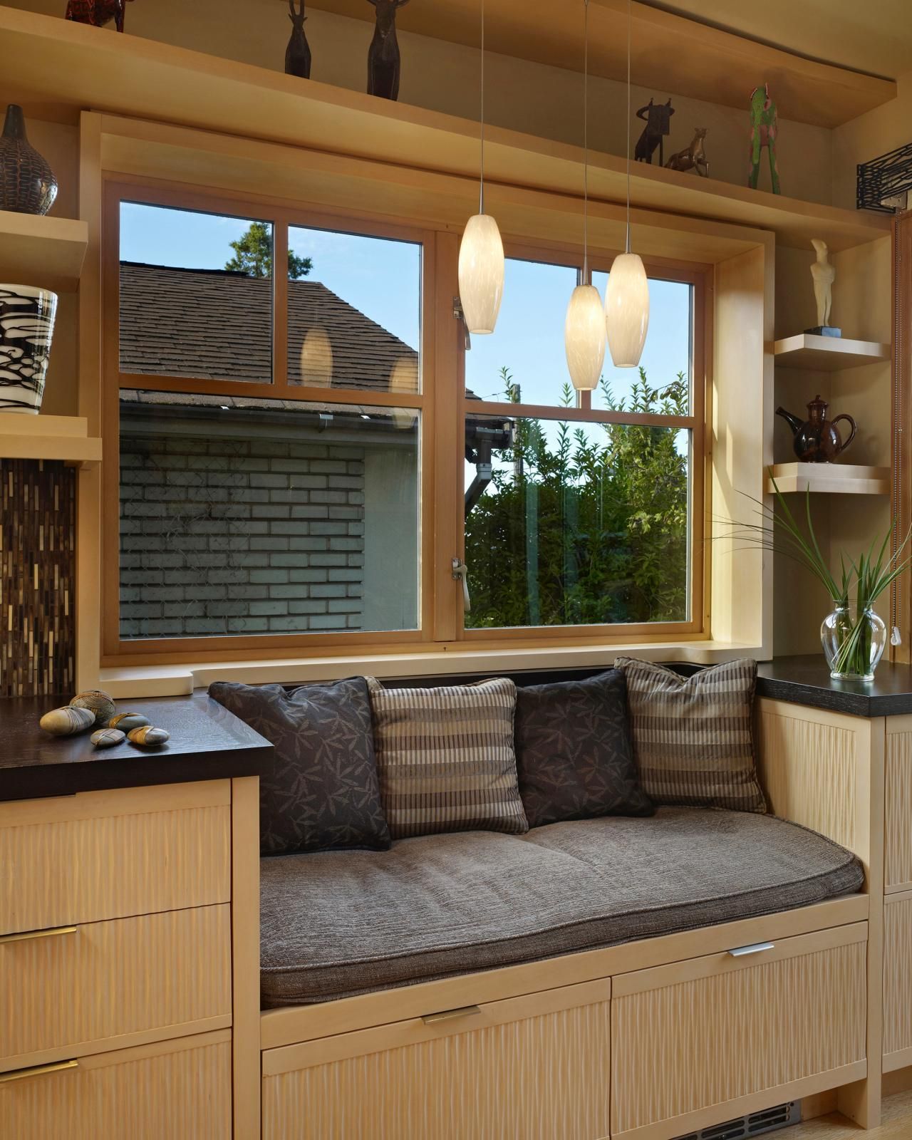 Диваны для кухни различаются размерами, типом конструкции, материалом обивки. Среди кухонных конструктивных решений наиболее часто можно встретить линейные и угловые диваны, реже – полукруглые.