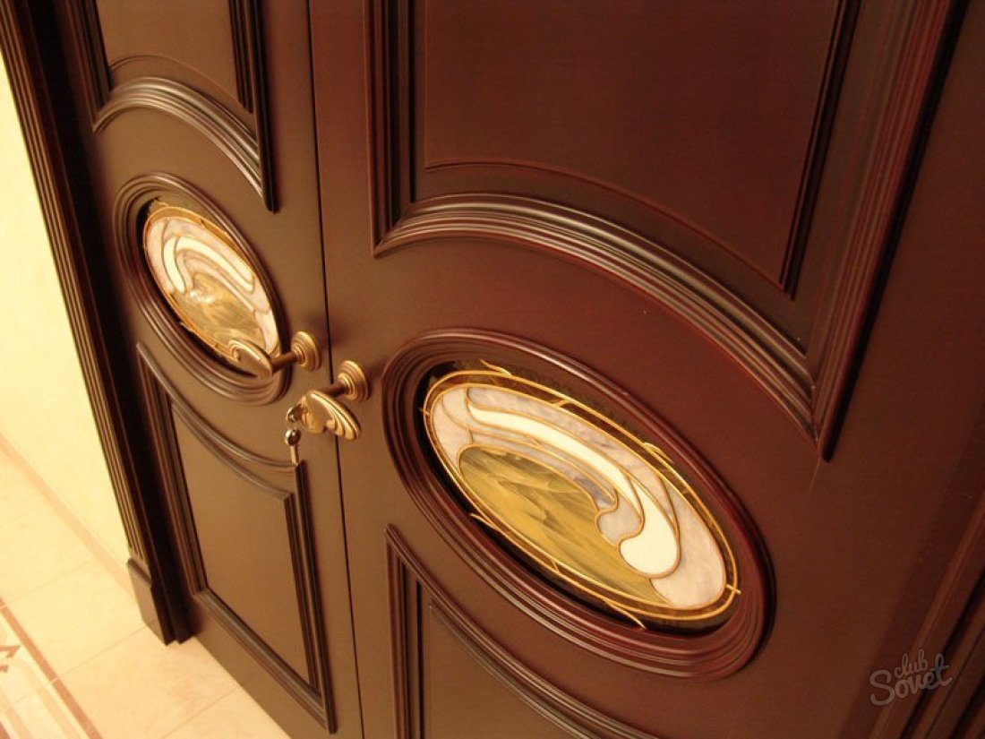 Дверь из массива. Возможно два варианта – либо дверь производят из цельного массива, либо из клеёного. Отделывают дверь также лаком.