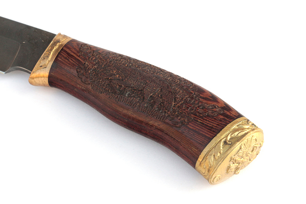 Рукоять этого ножа сделана из бруска стабилизированной карельской березы
