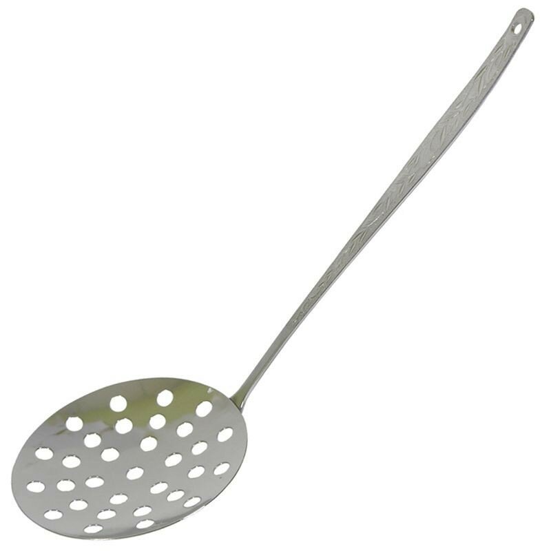 Большая шумовка для казана из нержавейки с длинной ручкой (38 см).