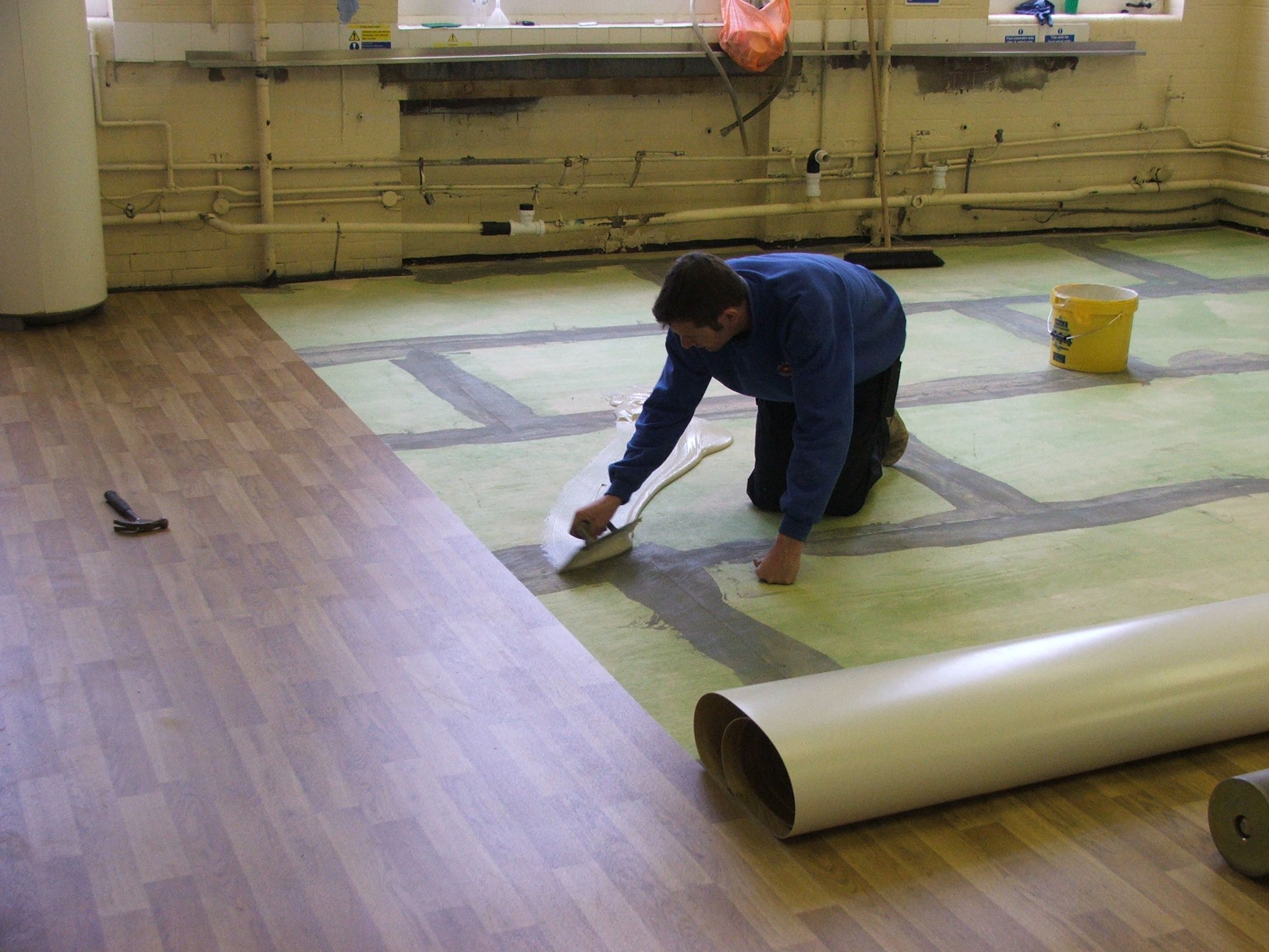 Когда основа подготовлена, можно приступать к настилу линолеума.