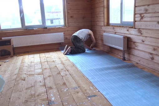 - Дополнительно под фанеру или линолеум можно проложить тонкий утеплитель. В случае укладки на доски, такая мера поможет сохранить линолеум в первоначальном состоянии на более долгий срок, так как при нагрузках на напольное покрытие, так или иначе, щели между досками будут со временем проявляться на тонком материале.