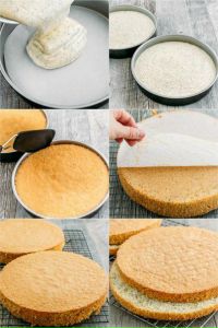 Один бисквит из четырех яиц, выпеченный в форме диаметром 20 см, обычно можно разрезать на три коржа. Чтобы разрезы были ровными, а коржи — одинаковыми по толщине, используйте несколько простых приемов.