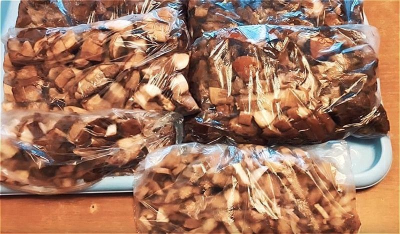 Так мы получим универсальную заготовку-полуфабрикат, без каких-либо добавок. Такие грибы после разморозки можно использовать и в первых, и во вторых блюдах, добавлять их в салаты и пироги. Грибные блюда получаются на вкус, как из свежих грибов.