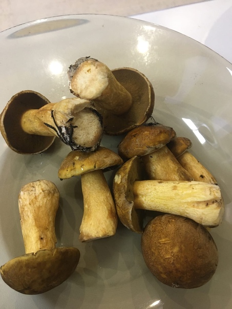 При варке я добавляю половину столовой ложки уксуса, так как моховики имеют свойство синеть в месте разреза и темнеть при варке. Если добавить уксуса этого не случится.