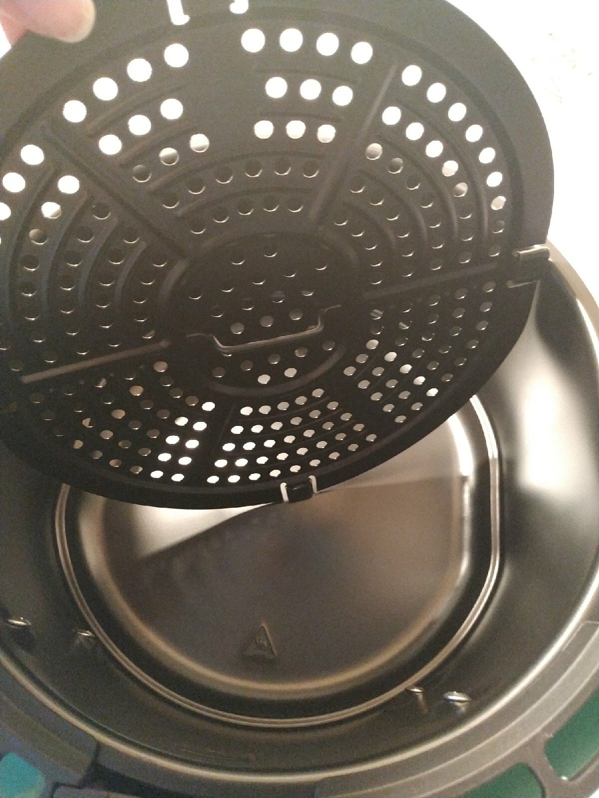 - Стеклянная чаша, установленная на подставке. В нее ставят высокую или низкую металлическую решетку, и на них выкладывают продукт. Также в аэрогриль можно поместить термостойкую посуду с ингредиентами блюда.