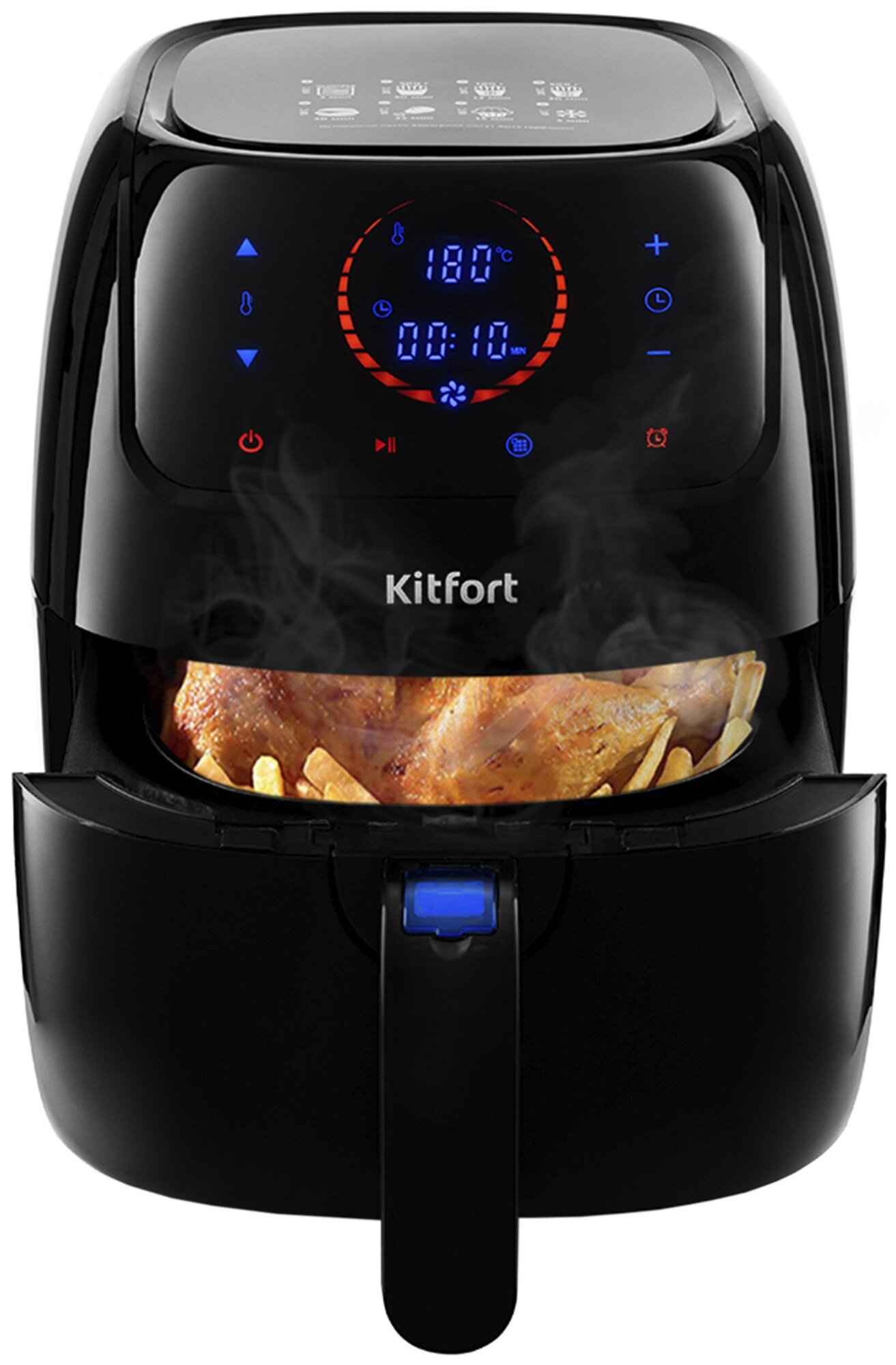 В результате получается красивое, хрустящее, золотисто-коричневое покрытие, очень похожее на жарение на сковороде или во фритюре. Продукты помещают в варочную корзину и, если использовалось масло, периодически встряхивают.Фритюрницы имеют регуляторы времени и температуры, а многие имеют предустановленные программы.