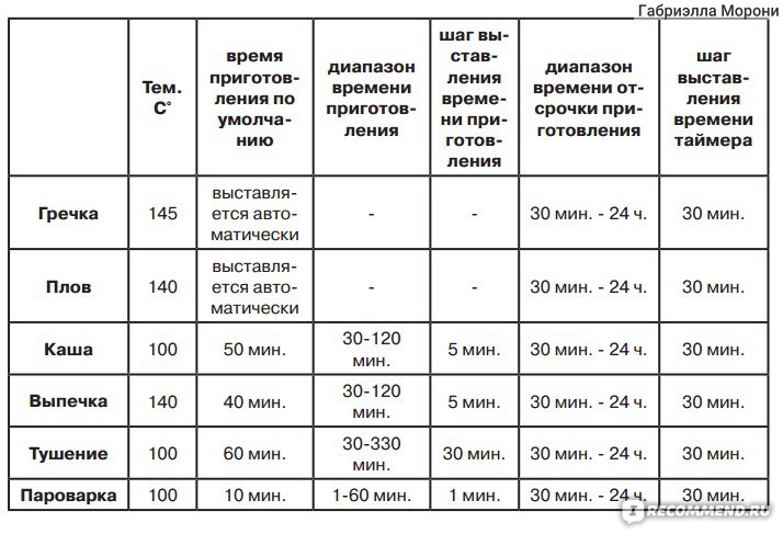 Изменения установок времени приготовления у различных моделей мультиварок также неодинаковы.