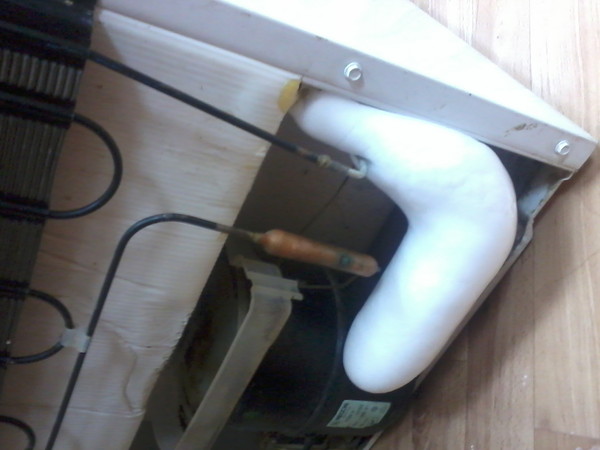 - Засор в капиллярном трубопроводе. Фреон не может нормально циркулировать и охлаждать температуру внутри оборудования. Как следствие, охлаждение внутри камеры плохое, постоянная работа мотора, компрессор перегревается, на стенке холодильника намерзает снег. Для возобновления нормальной работы нужно не только прочистить трубопровод, но и заменить фреон и масло.