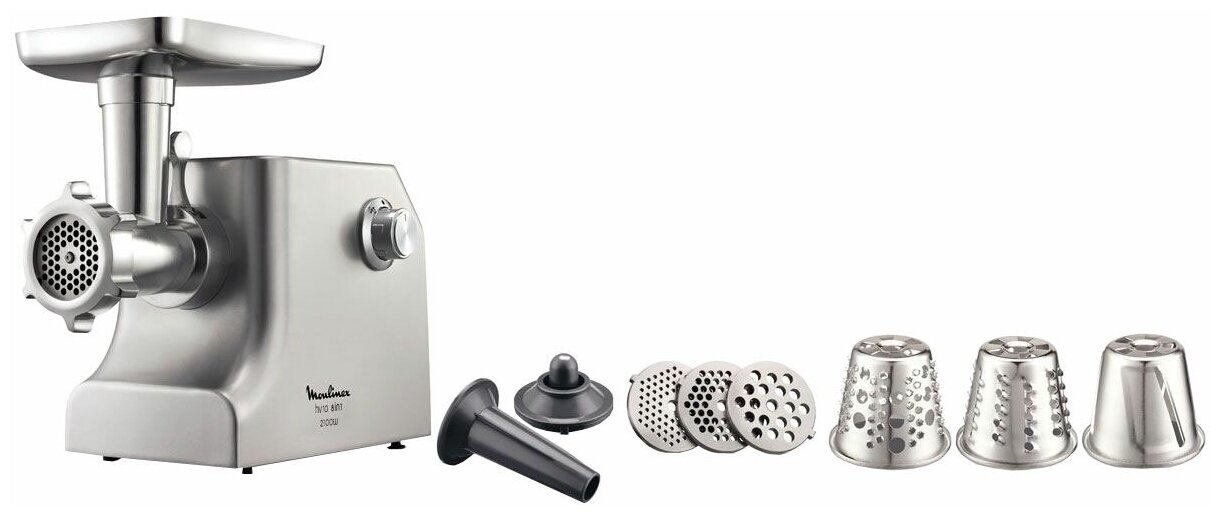 Компактная и в то же время мощная мясорубка, благодаря мощному двигателю, может измельчить до 1,7 кг мяса в минуту.3 насадки для большой, мелкой терки и полной нарезки: готовьте салат из свежих овощей и гарниры каждый день. 2 решетки из нержавеющей стали для среднего и крупного помола. Специальная насадка для приготовления домашней колбасы. Самозатачивающийся нож обеспечивает стабильное качество заточки в течение длительного времени. Удобная ручка для транспортировки и хранения.