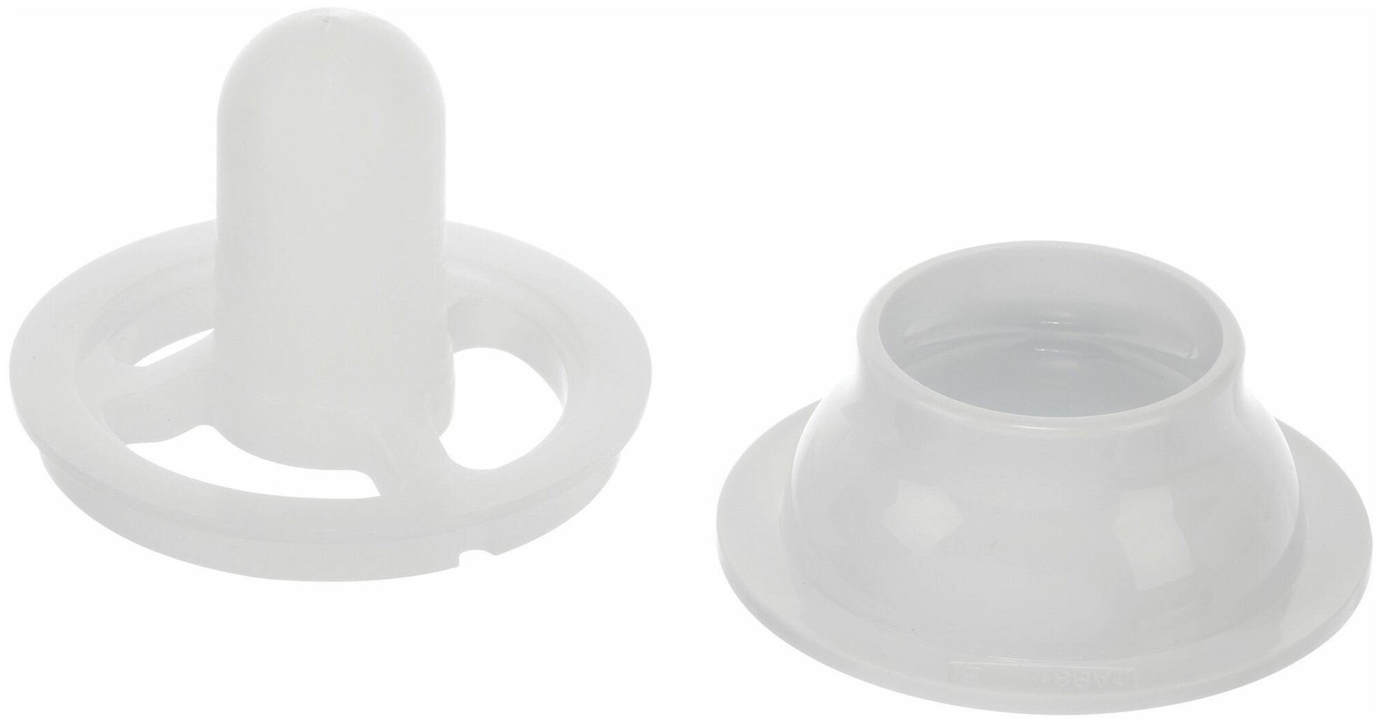 В ее состав входят 2 детали (как на фото). Нужно отметить, что для установки насадок следует вынуть решетку и нож. После чего первый элемент, в виде круга, имеющего длинную закругленную выпуклость, закрепляется на рабочем валу. Далее устанавливается второй элемент, который выглядит как широкий усеченный конус.