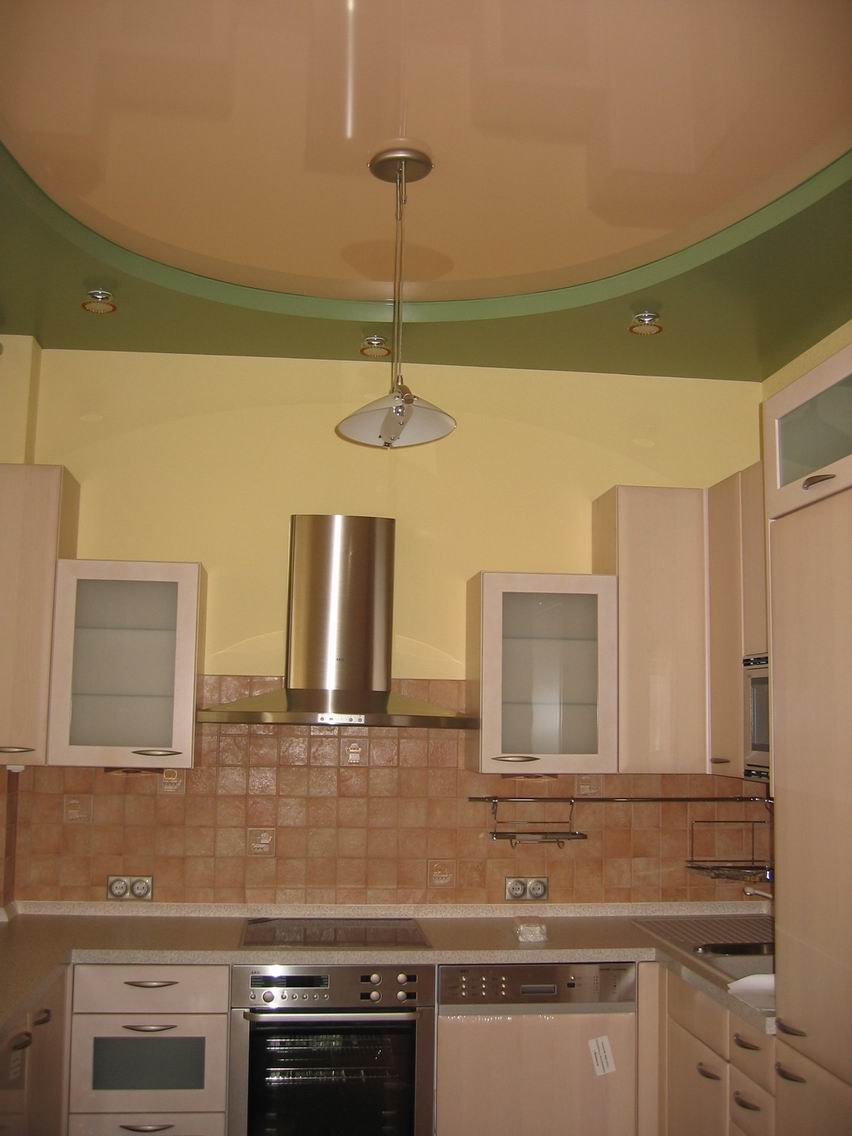 Как видите, проблем у данных кухонь немало и со всеми ними мы сможем справиться, используя натяжные потолочные покрытия.