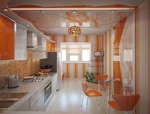 Как лучше устроить натяжные потолки в хрущёвке на кухне. Выбор типа натяжного материала, исходя из особенностей помещения. Достоинства и недостатки плёночных натяжных покрытий. Какую фактуру предпочесть. Рекомендации по дизайну натяжного потолка на хрущевской кухне.