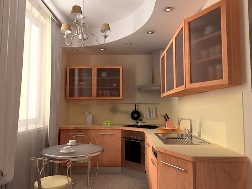 - Из-за небольшой высоты помещения мы ограничены выбором только одноуровневых конструкций. Многоярусные сооружения очень сильно понизят потолок, поэтому не подходят для хрущёвских кухонь.