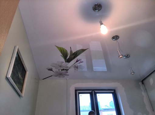 - Если вы решили нанести изображение на глянцевые потолки, то закажите латексную печать. Она позволит получить такое же зеркальное гладкое изображение, как сама основа.