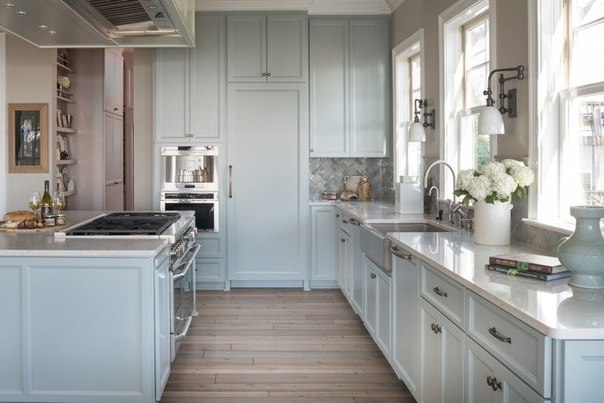 Светлые оттенки синего сделают кухню более воздушной, легкой и свежей. Они дарят чувство защищенности, уравновешенности и положительно влияют на психологическое состояние.