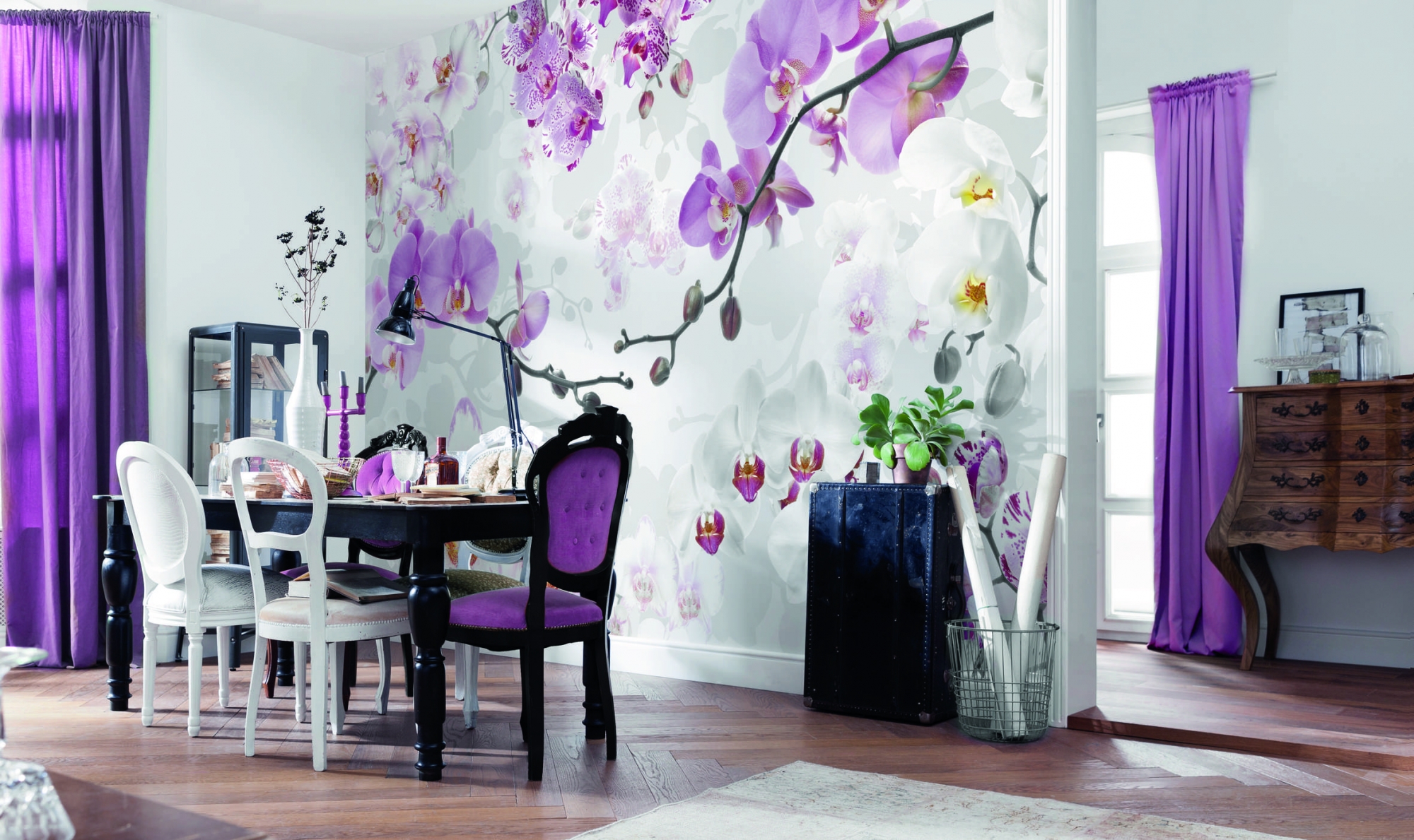 Выбери для кухни влагостойкие, моющиеся обои. Зону приготовления пищи чаще оформляют однотонными обоями или имитирующими кирпичную кладку, настенную плитку. Для стен гостиной подбери более эффектную «одежку». Не скупись на материал – здесь все должно выглядеть достаточно богато, даже однотонные обои.