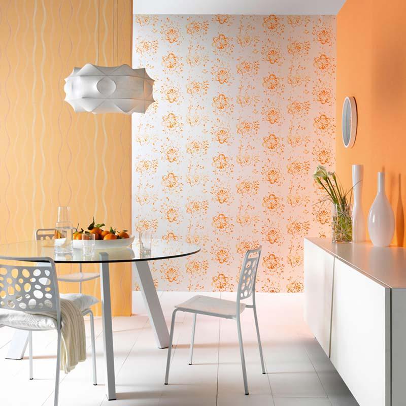 Веселые оранжевые обои создадут позитивную обстановку на твоей кухне, располагая к хорошему настроению и отменному аппетиту. Стоит также отметить, что апельсиновая палитра значительно осветляет интерьер, усиливая эффект осветительных приборов.