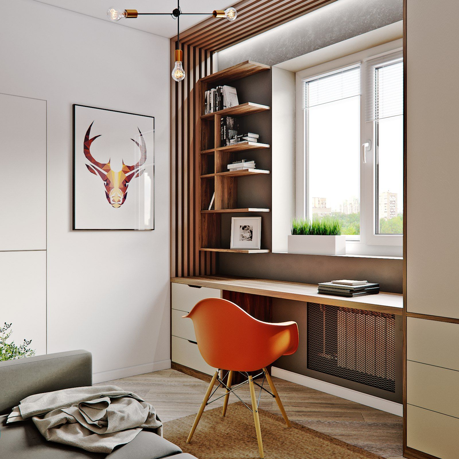 Обрамление окна наряду с углами обычно остается в стороне при расстановке мебели. Такой вариант позволит вам превратить пустующую площадь в функциональную зону;