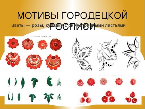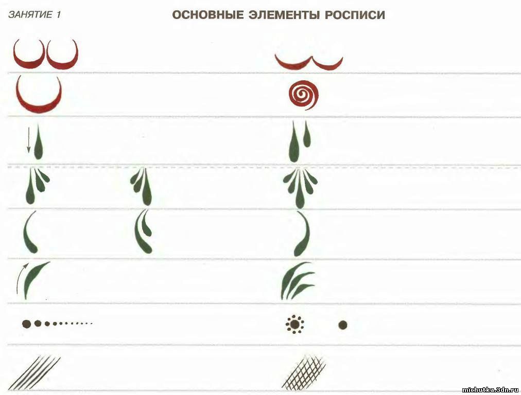 Основные элементы росписи городецкой росписи: Элементы и приёмы городецкой росписи