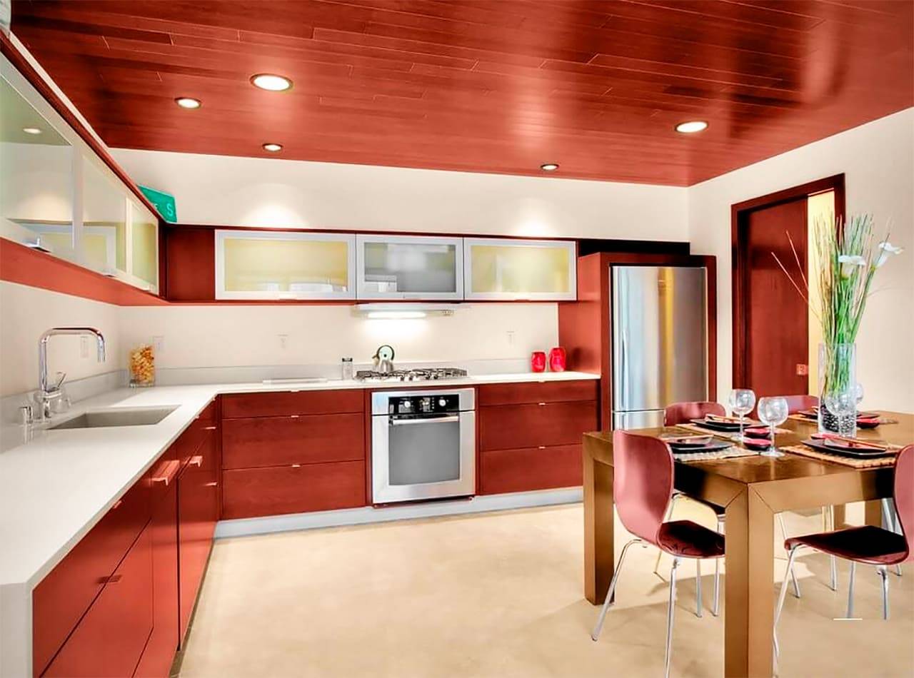 Отделка потолка в кухне варианты: 14 материалов, более 50 фото