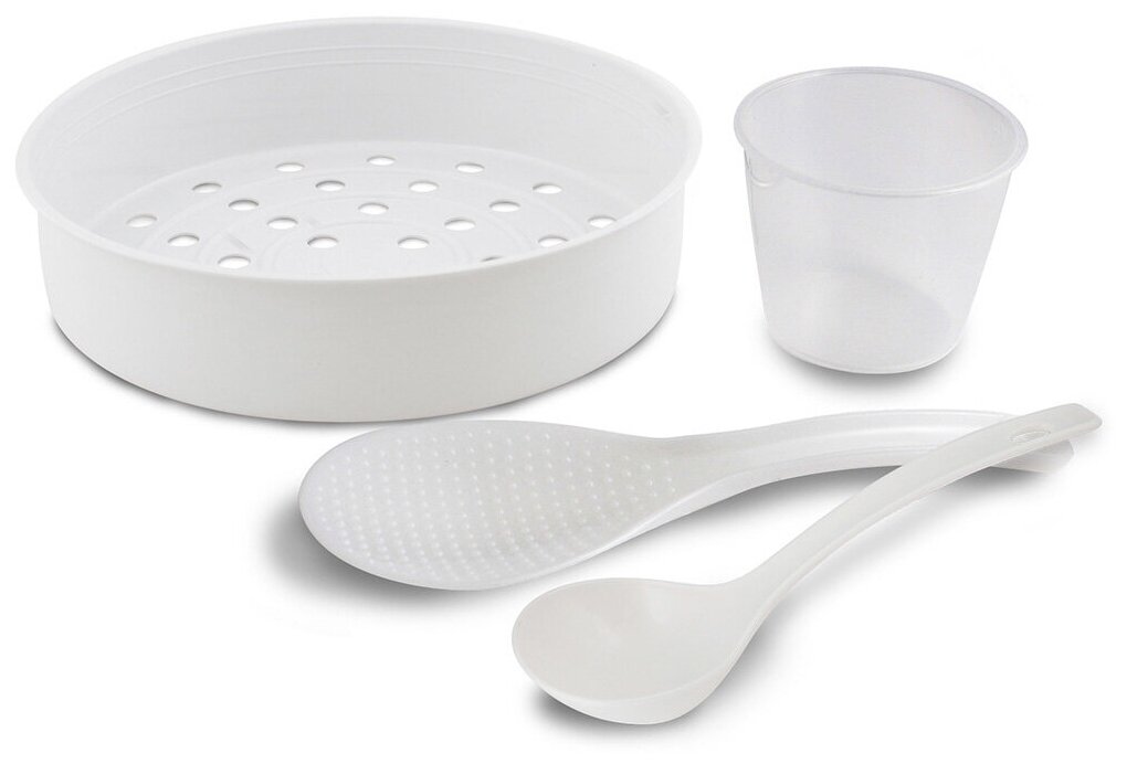 Оборудование для кухни состоит из множества деталей — варочные насадки на пару, контейнеры для мультиварки, чашки, емкости для варки риса.