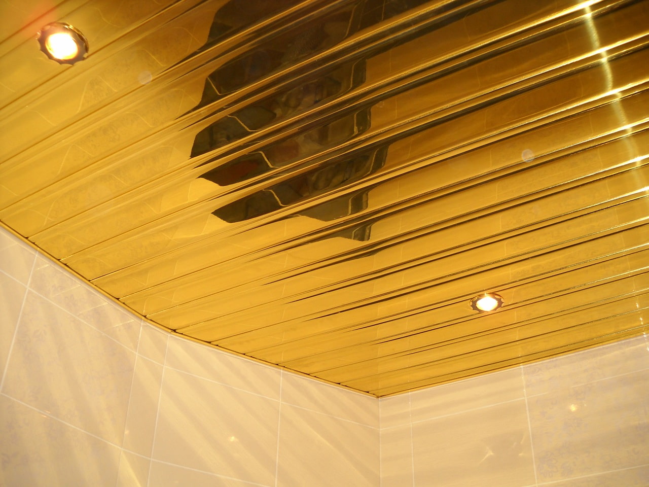 К ним относятся: натяжные, стеклянные и зеркальные конструкции, потолки из гипсокартона, а также обшитые панелями из массива дерева и пластика.