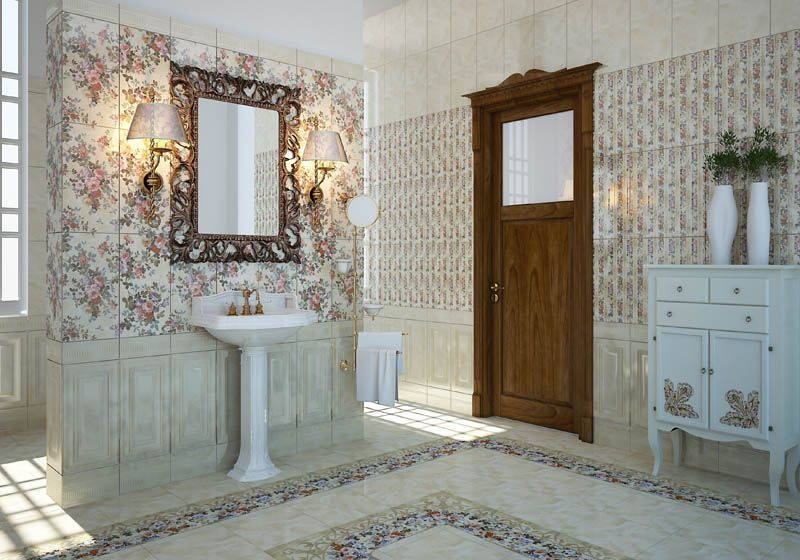 Керамическая плитка стиля французской провинции может быть использована в оформлении разных комнат. Выбор делают на основании собственных предпочтений: за счет широчайшего ассортимента, представленного современными торговыми марками к продаже, можно подобрать разновидности для каждого помещения, включая кухню, гостиную, ванную, спальню, прихожую, эркерый выступ.