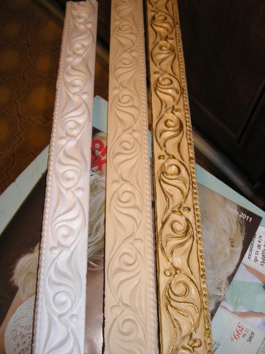 Использование глейзов позволяет придать поверхности молдинга почти любую необходимую фактуру – дерева, натурального камня, золота или потертого металла:
