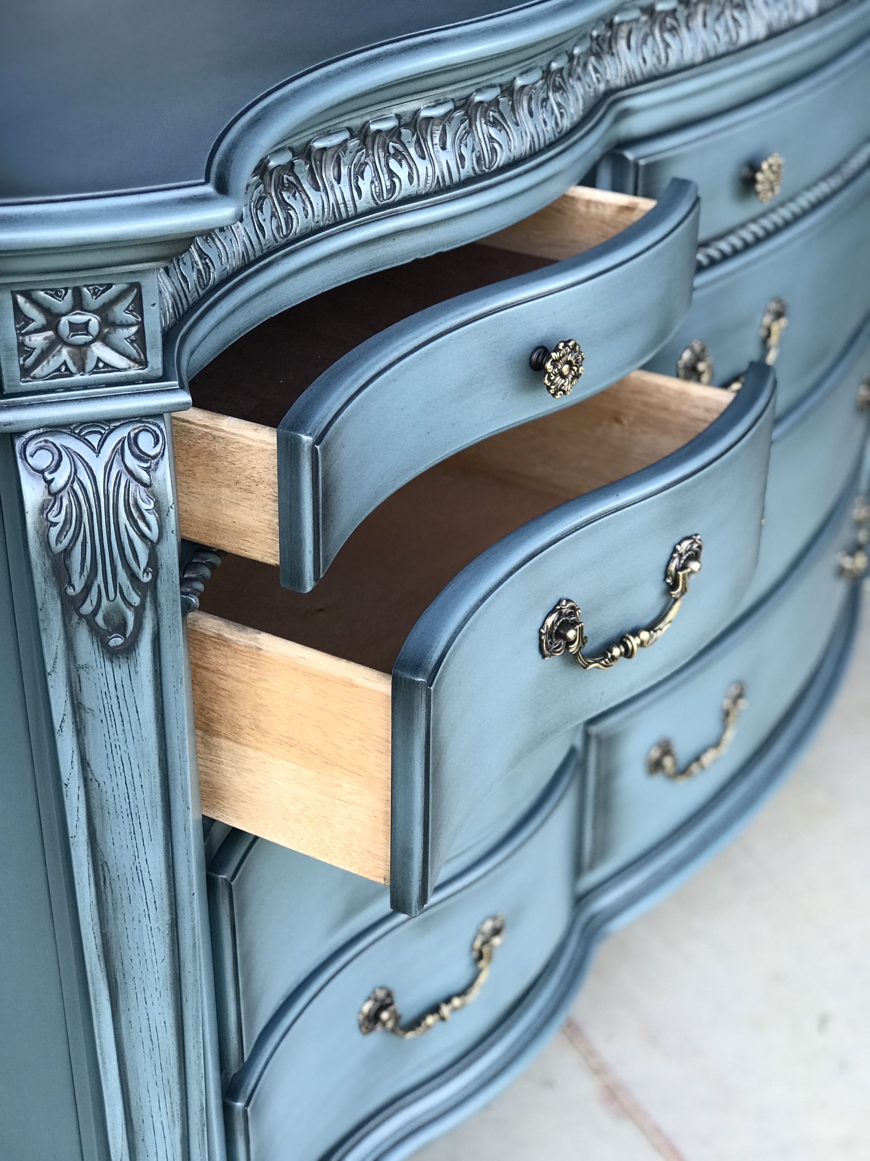 2) После грунтовки нанесите один или два слоя краски. Я НАСТОЯТЕЛЬНО рекомендую краску на меловой основе. Латексная краска просто не подходит для покраски мебели. Я пристрастился к Amy Howard At Home One-Step Paint для покраски мебели (и нет, я говорю это не только потому, что мне прислали эту конкретную краску бесплатно. Я использовал ее много раз здесь, в блоге где я заплатил за это из своего собственного кармана, например, когда я использовал его дважды, чтобы покрасить какую-то потрясающую мебель для кампании, которую я купил на стоянке — мои прикроватные тумбочки и комод , который находится в комнате Эттли! ).